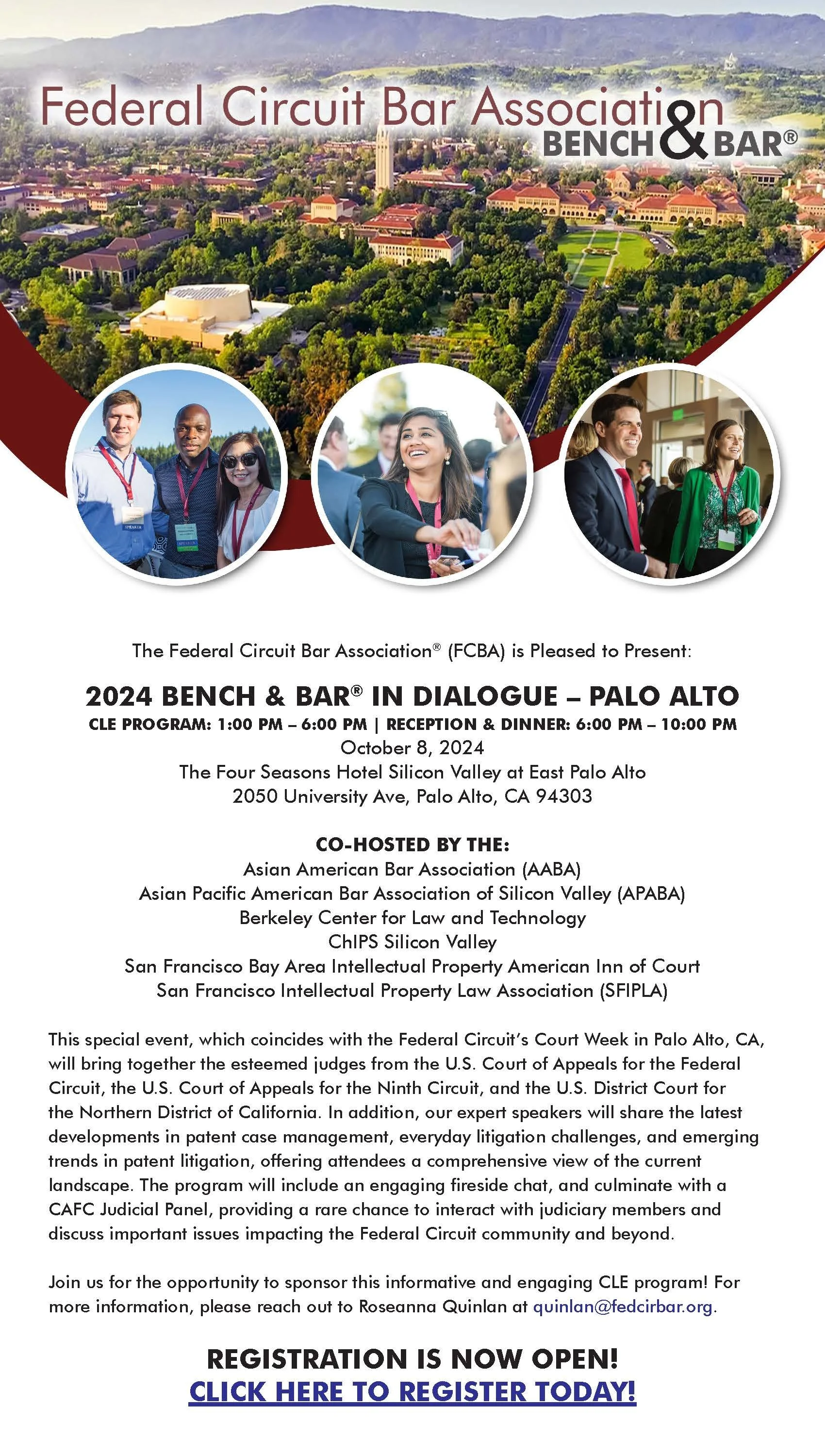 This CLE event and Reception by the Federal Circuit Bar Association (Co-hosted by APABA Silicon Valley) will bring together the judges from the U.S. Court of Appeals for the Federal Circuit, the U.S. Court of Appeals for the Ninth Circuit, and the U.S. District Court for the Northern District of California.